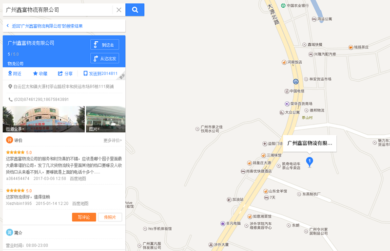 很多客戶在發(fā)貨的時候在沒有去過的地方都會采用百度地圖,多次客戶在通過經驗識別路況的時候到了鑫富物流公司附近都找不到公司的具體地址,那么好了,今天小鑫就為你提供廣州鑫富物流有限公司的百度地圖,這樣的話你就不用擔心再迷路或者找不到路了,點擊圖片就可以進入地圖了: